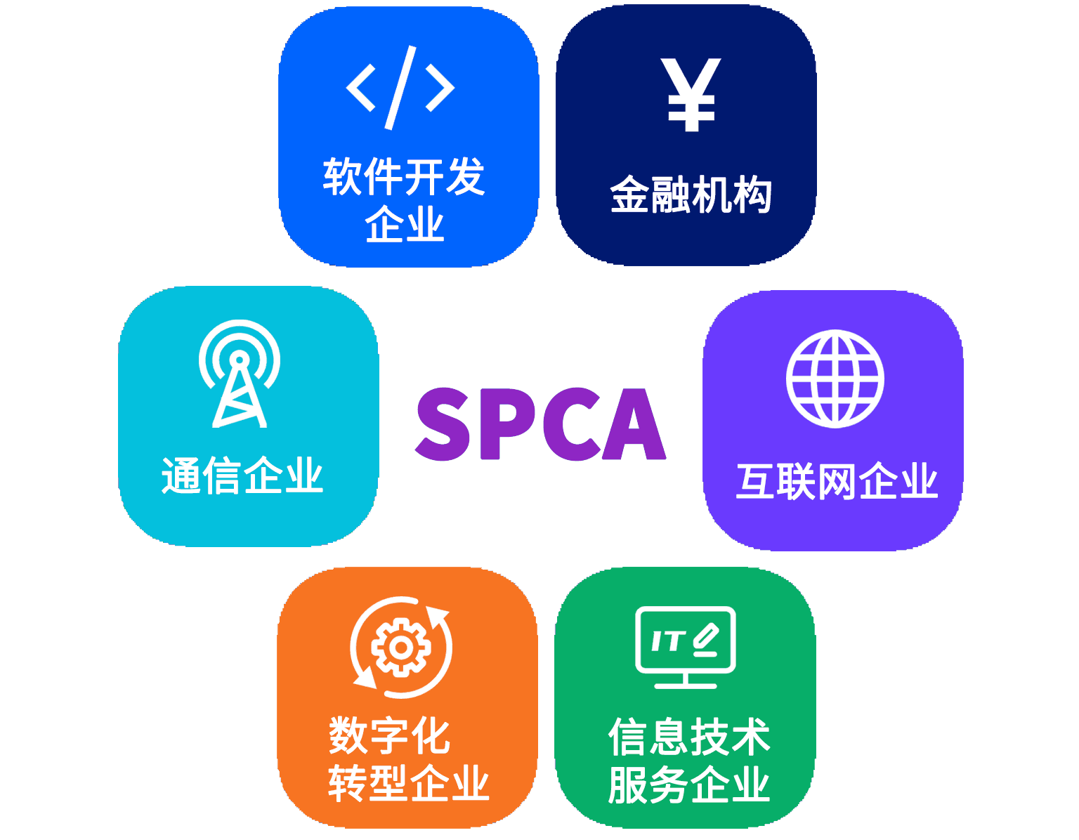 SPCA适用于软件开发、信息技术、金融机构、通信企业、数字化转型企业和互联网等行业企业。