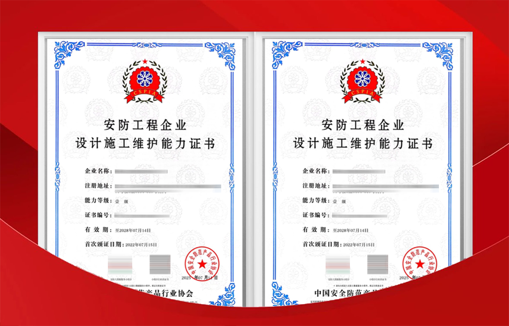 《安防工程企业设计施工维护能力证书》是行业内市场自发形成的能力评价证书,是为了推进安防行业自律机制建设,营造公平、有序、诚信的安防市场环境,引导安防工程企业规范经营,保证工程质量,提高服务水平,促进安防行业持续健康发展,由中国安全防范产品行业协会组织开展安防工程企业设计施工维护能力评价。