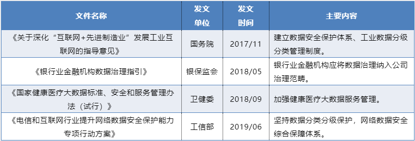 2017年5月至今,国务院、银保监会、国家卫建委、证券业协会和工信部密集发文,集中提出对相应行业数据信息加强重视、严格管理。详细如下: