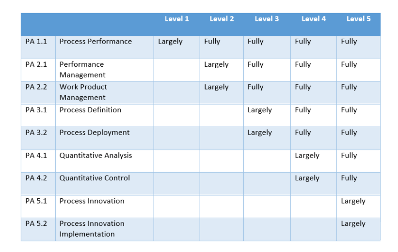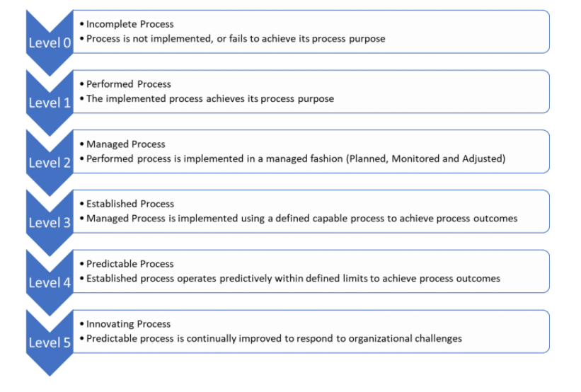 ASPICE根据企业管理的细致和严谨程度不同,将企业的软件研发能力划分为6个级别,0级为最低级,5级为最高级。级别越高代表研发项目出现意外情况的可能性更低,企业对项目和产品的成功掌控力越强,越有能力按时向客户交付高质量的产品。