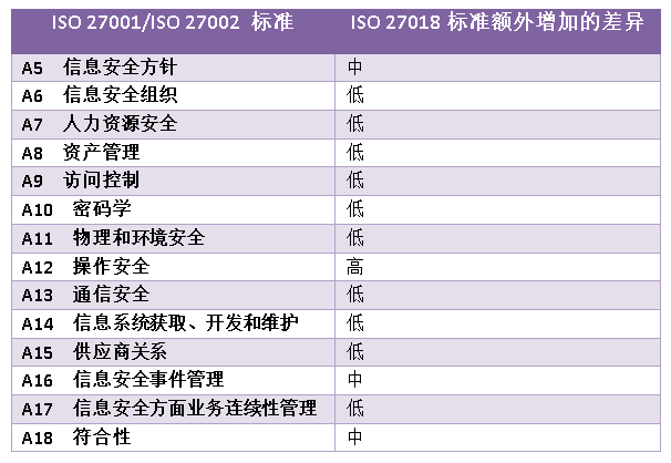 3、从信息安全来看,IS027018更偏重于信息安全管制措施。