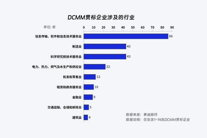 从行业分布看,目前评定企业主要分布在软件技术、制造业、能源电力等行业。目前天津、河北、山东、江苏、浙江、贵州等地均已出台相应奖补政策以推动DCMM贯标评估的顺利进行。