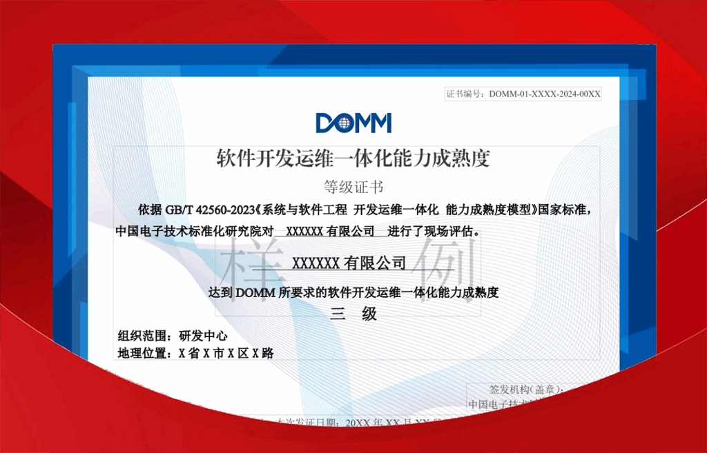 DOMM(开发运维一体化能力成熟度模型)是依据《GB/T 42560-2023系统与软件工程开发运维一体化能力成熟度模型...查看详情