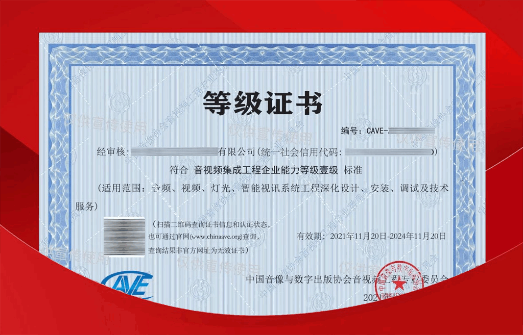 在教育培训领域,音视频集成工程企业服务能力等级资质证书同样具有重要的作用。学校、培训机构等需要专业的音视频集成工程服务,以提高教学质量和效果。